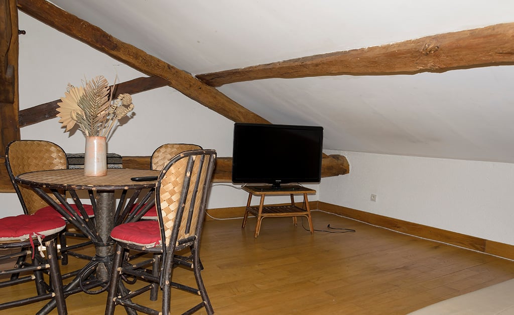 Notre gîte de 90m² dispose de 2 chambres, d'une cuisine avec cheminée, d'un salon à l'étage avec une télévision, d'une salle de bain et WC séparé.