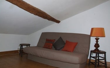 Dans la 1ère chambre, vous trouverez 1 lit deux places en 160 et dans la 2e chambre, 1 lit deux places en 140 et un lit simple en 90 à l'étage d'une mezzanine. Le canapé du salon est convertible et peut accueillir 2 personnes supplémentaires. Mais nous recommandons le gîte pour une capacité de 4 à 5 personnes. Nous pouvons également vous fournir un lit bébé.